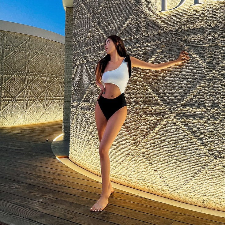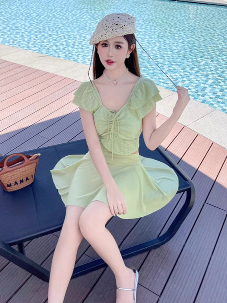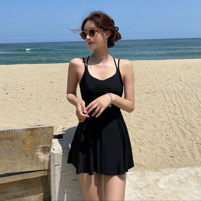 ・あまり露出したくない方におすすめのスカート付きワンピースタイプ。