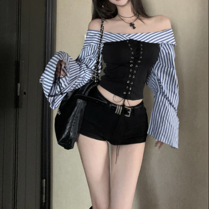 ・トップスはサイドで結んで着用することもできる2WAYタイプ。