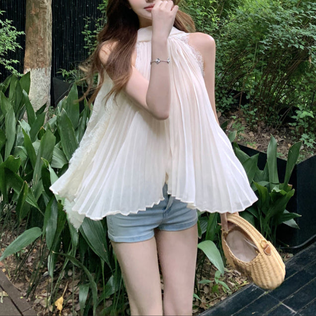 ・胸元のギャザー部分の紐は首で結んでホルターネックっぽく着用することも可能です。