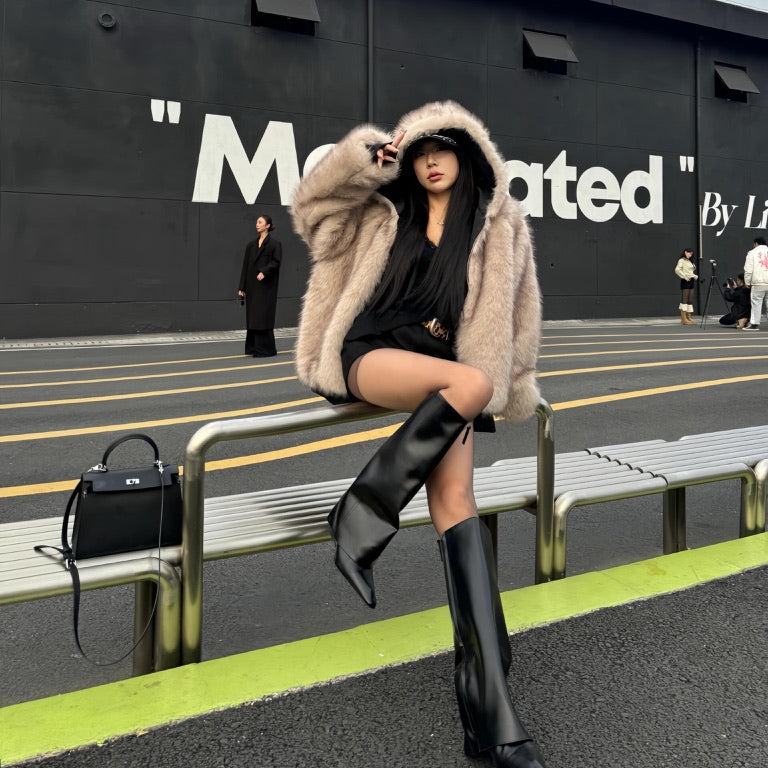・ブラックの面を表側にするとカジュアルに、ファーを表にするとエレガントで印象がグッと変わります。