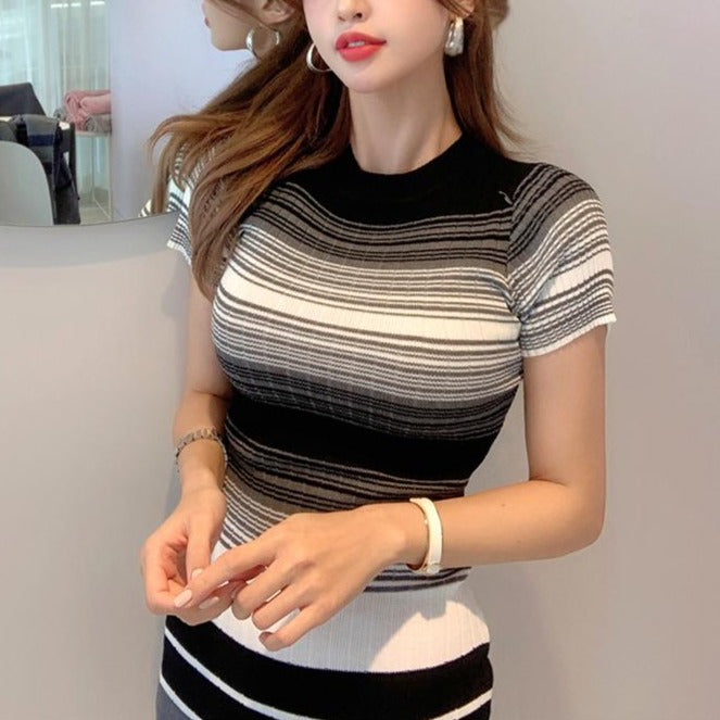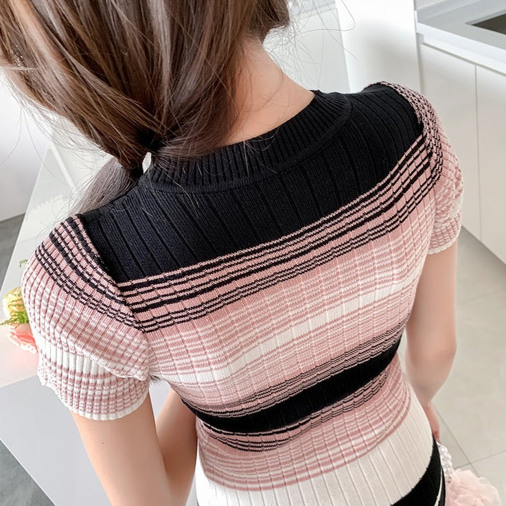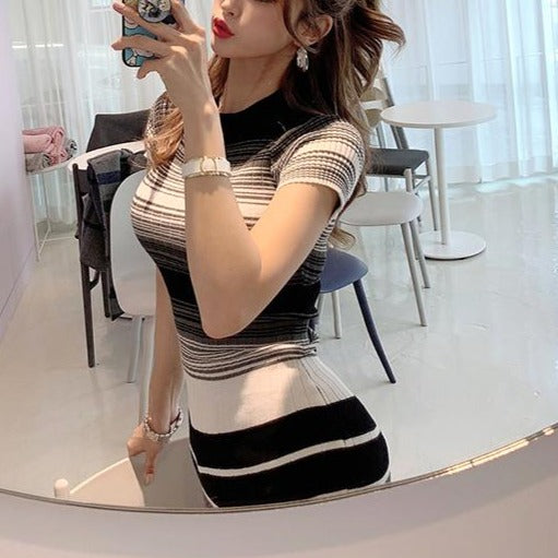 マルチボーダー柄ニットワンピース(3COLORS)AO1021