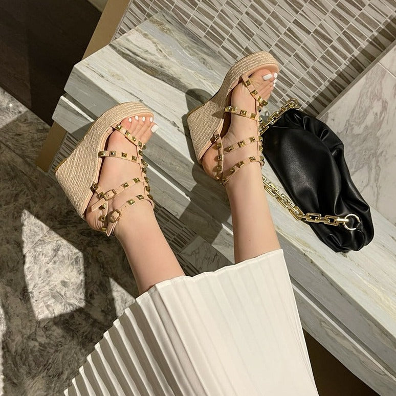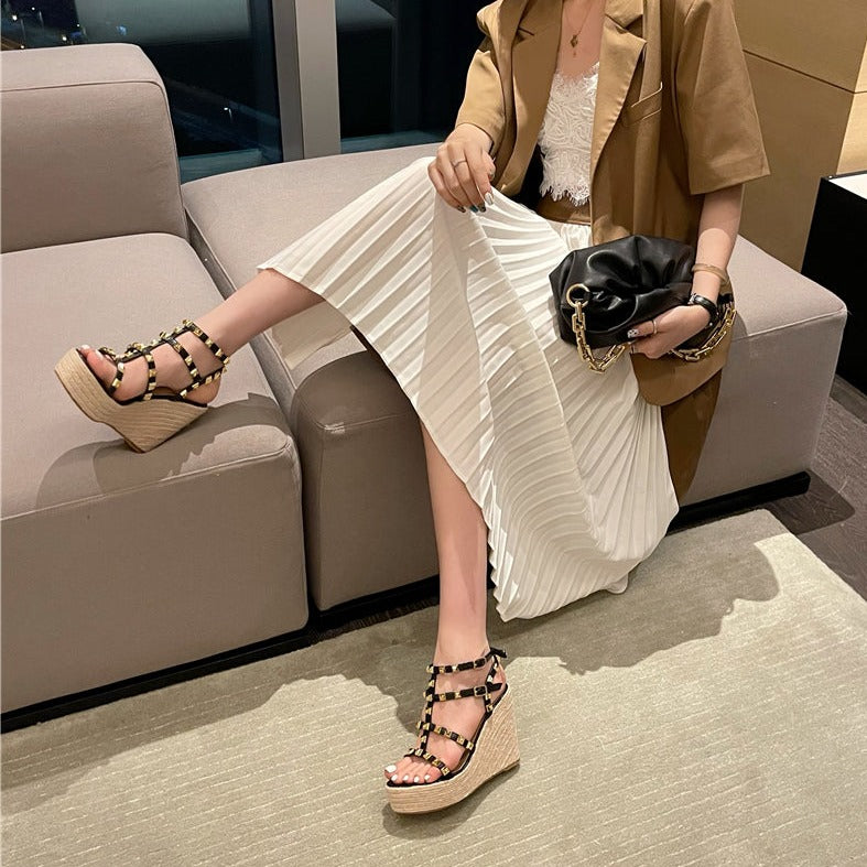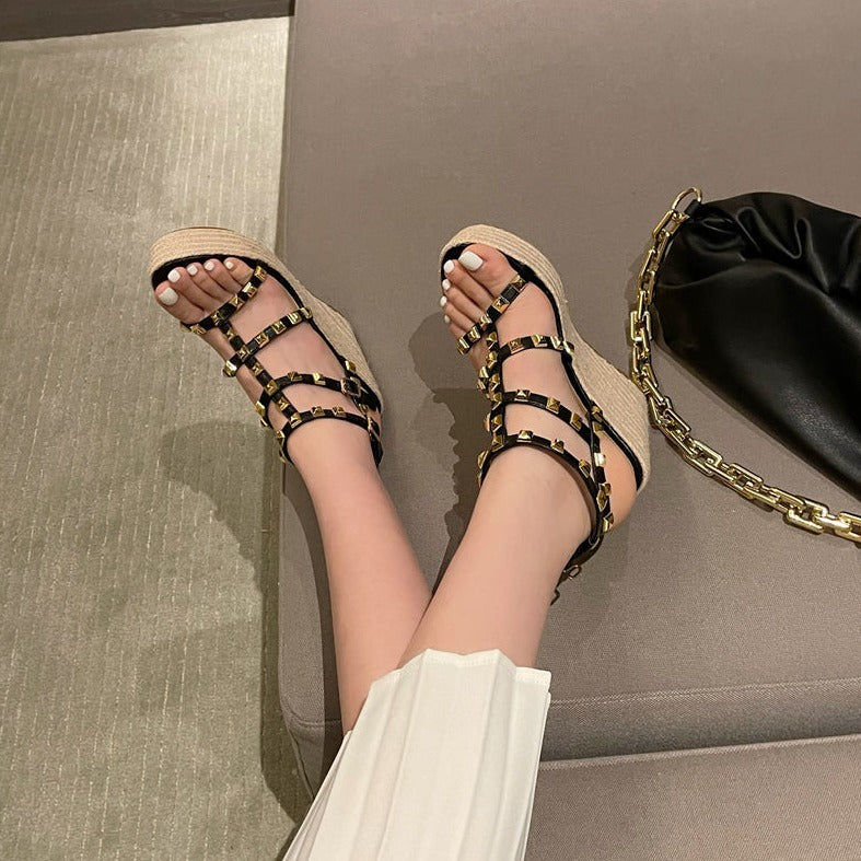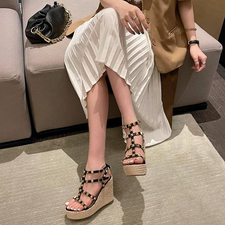 ・スタッズサンダルは足元のお洒落に欠かせないアイテム。