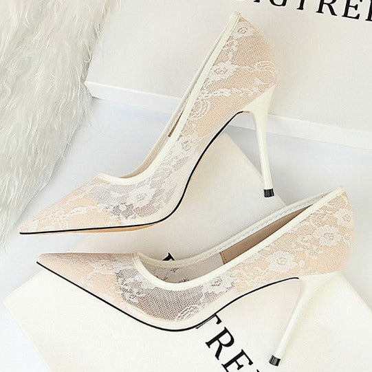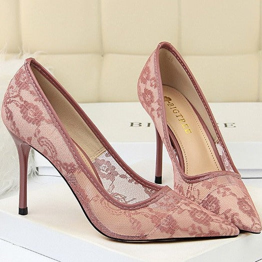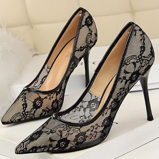 ・どんなスタイルにも合わせやすい総レースパンプス。