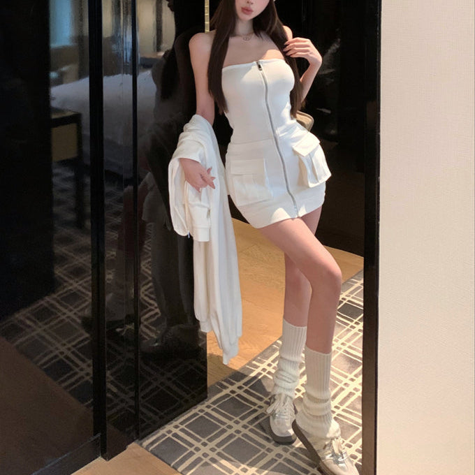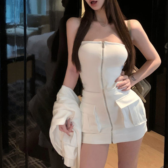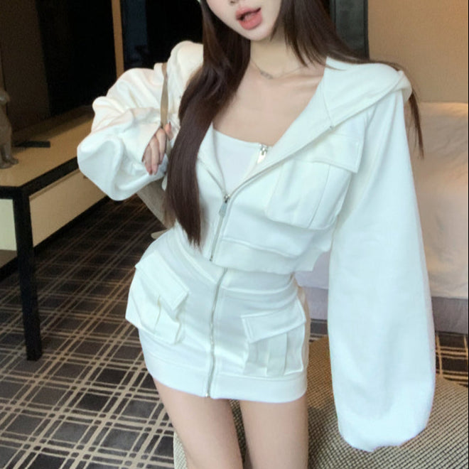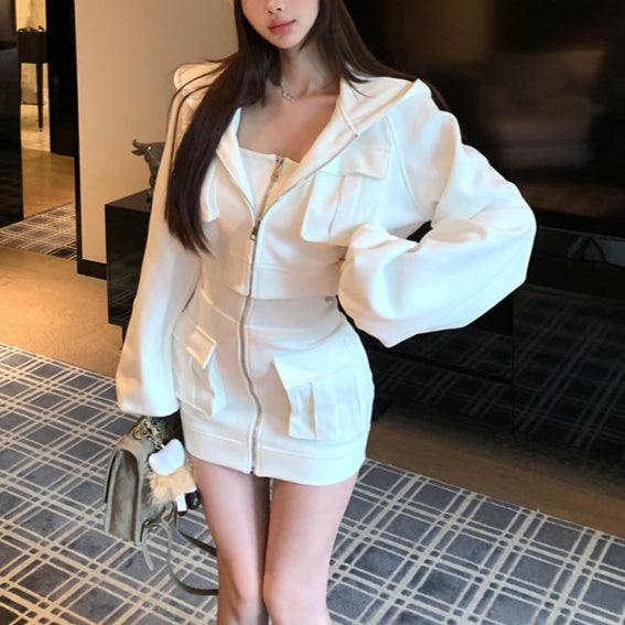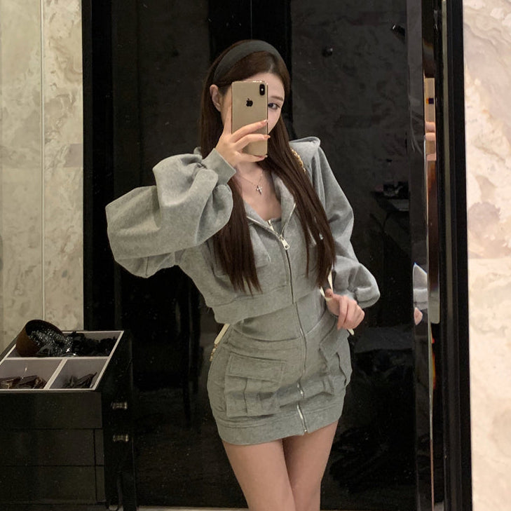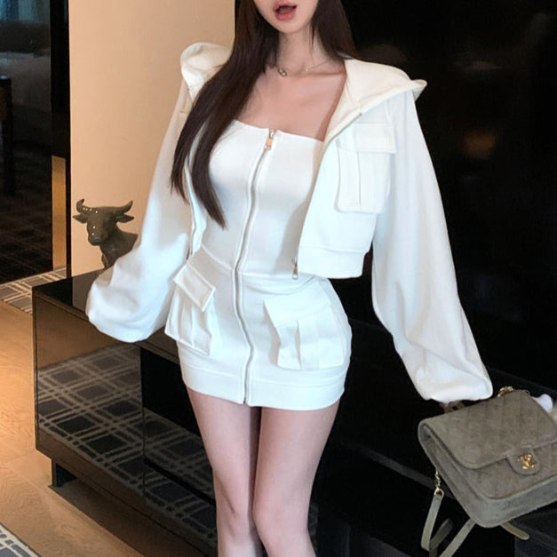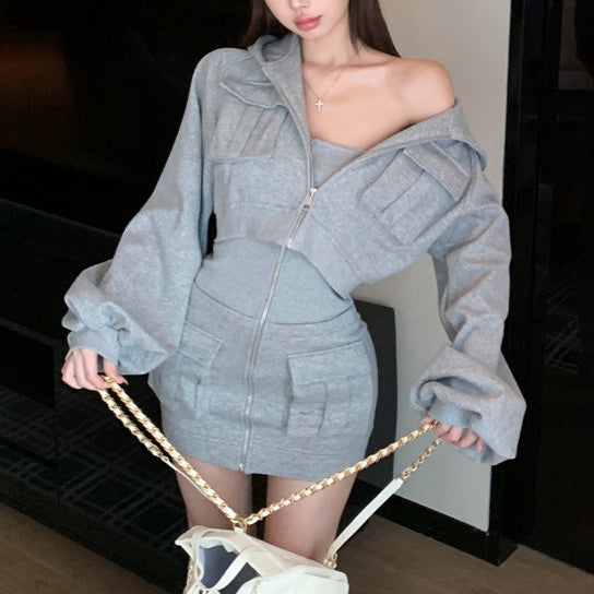 ・スウェット地でカジュアルだけど、パーカーを脱ぐと露出度高のベアワンピでギャップが可愛いアイテム♡