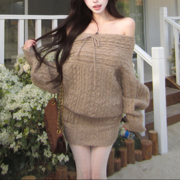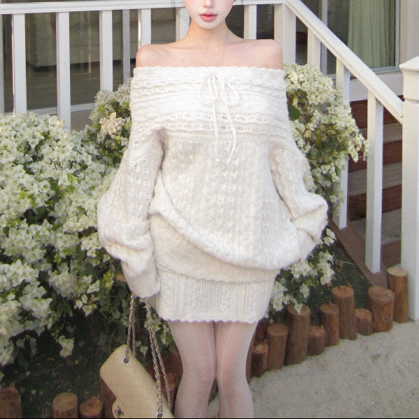 ・ゆったりニットが可愛いオフショルのセットアップ。