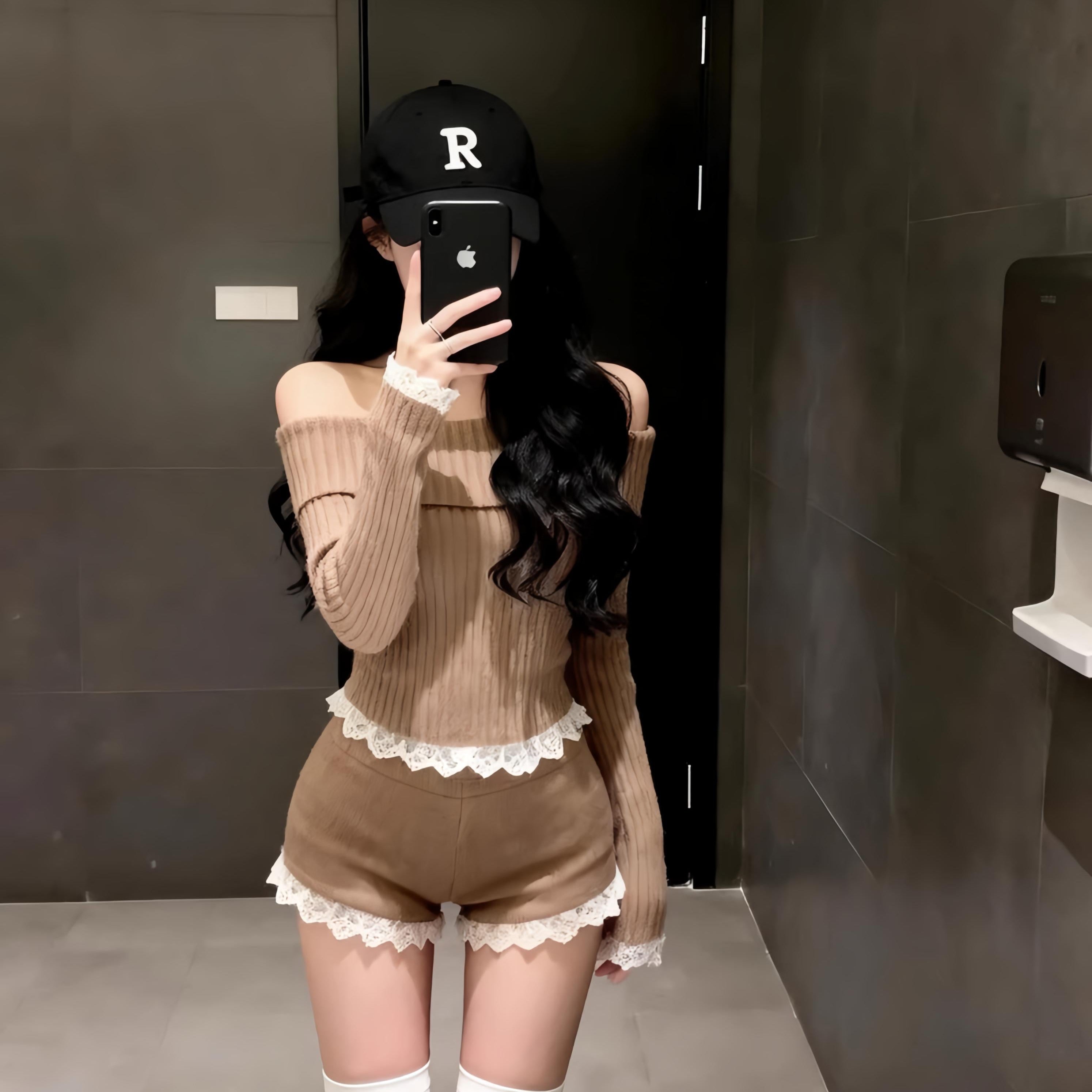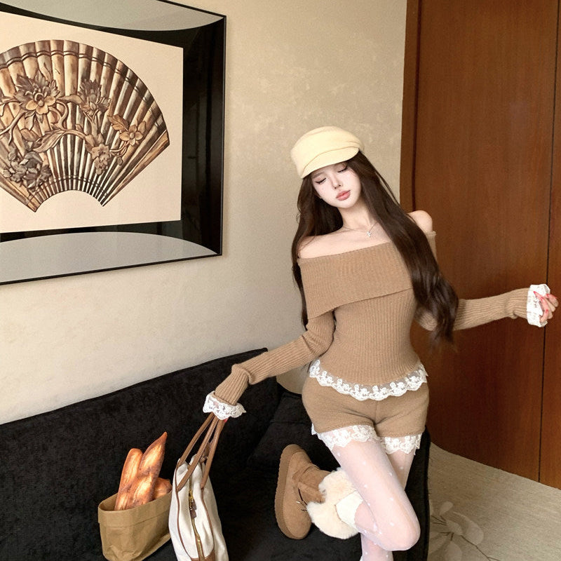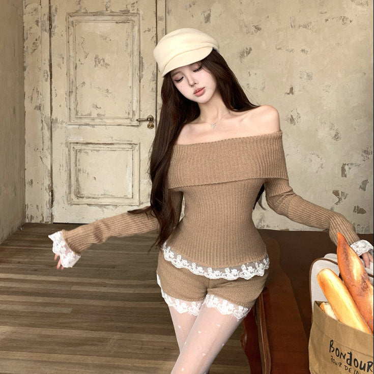 ・裾と袖口のレースがポイントのセットアップ。