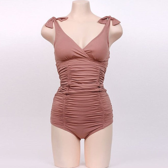 ・シャーリングデザインで体形カバーをしてくれるスイムウェア。